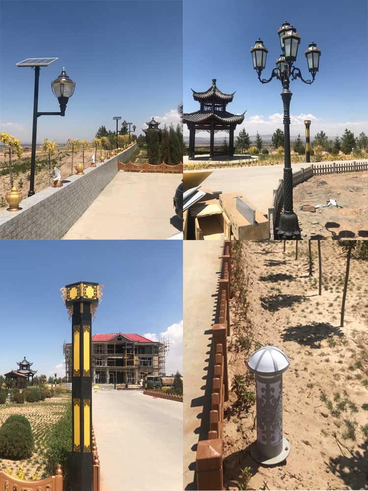 簡介—— 寧夏吳忠市同心縣景觀燈、庭院燈、草坪燈系列項(xiàng)目,是我公司與2018年5月完成的具有當(dāng)?shù)仫L(fēng)格的特色燈具,我們提供給客戶的這批產(chǎn)品都是都是根據(jù)客戶的需求,安裝公司圖冊(cè)進(jìn)行生產(chǎn)的,每款燈都有特色,全部安裝的是市電庭院燈、景觀燈、草坪燈。