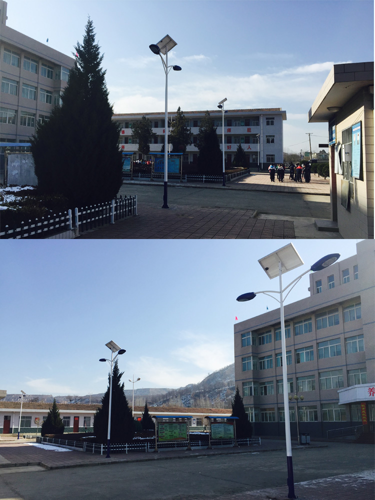 簡介—— 甘肅省平?jīng)鍪袑W校路燈工程,采購的是我蘭光照明單板雙頭太陽能路燈,甘肅的冬季天黑的比較早,為了給校園操場提供照明路燈,安裝節(jié)能型的太陽能路燈,在學校的操場和道路上安裝,給同學們提供夜間照明。